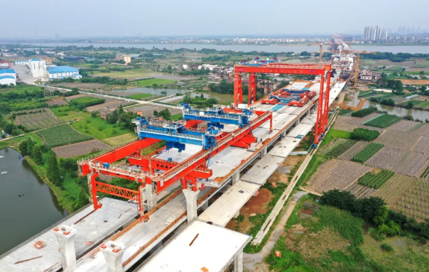 在國內(nèi)首次實現(xiàn)公鐵合建段上層雙幅公路梁的一孔兩榀式同架,創(chuàng)新解決預(yù)制梁非對稱結(jié)構(gòu)帶來的極限偏載難題,填補(bǔ)了行業(yè)技術(shù)空白。